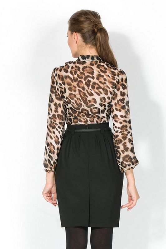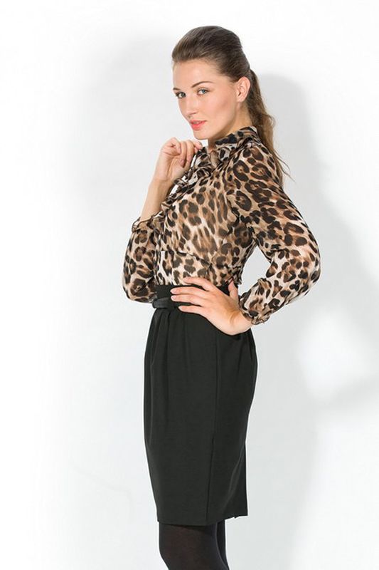 Эффектная блузка с модным и стильным принтом под леопарда с яркими деталями в крое – оригинальным воротником в стиле «жабо» и отделкой манжет деликатными рюшами. Этой элегантной модели присущ особый шарм, который подчеркивает темпераментность, а вместе с тем и утонченность стиля ее обладательницы. Блузка гармонично сочетается со множеством фасонов брюк и юбок, и станет одной из незаменимых моделей в гардеробе современной леди.