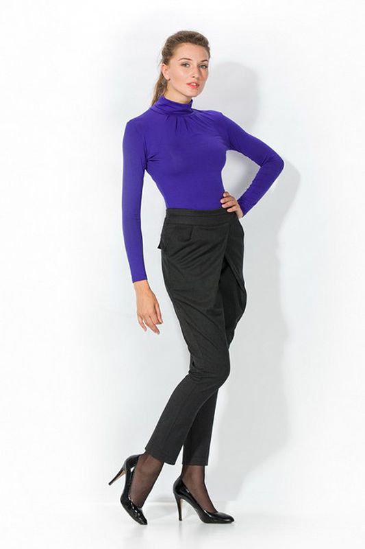 Брюки, в крое которых фасон «галифе» создан оригинальным запАхом, станут одной из самых эффектных моделей в гардеробе современной леди. Деловой костюм, студенческий гардероб, повседневная одежда… эта модель может эффектно подчеркнуть множество стилей и сочетается с большинством фасонов блузок, блуз и рубашек. Классический черный цвет брюк эффектно гармонирует в ансамбле со многими другими цветами, создавая каждый раз эффектную палитру, которая подчеркнет Ваши предпочтения и вкусы.
