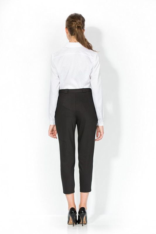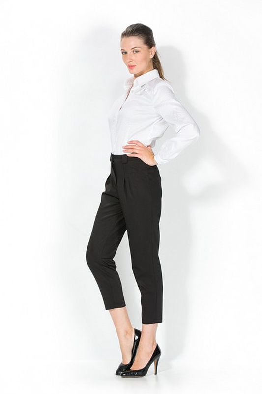 Изящные брюки в модном стиле «капри» и удобными вытачками спереди – эффектная классическая модель, которая может эффектно подчеркнуть множество стилей и сочетается с большинством фасонов блузок, блуз и рубашек. Классический черный цвет брюк эффектно гармонирует в ансамбле со многими другими цветами, создавая каждый раз эффектную палитру, которая подчеркнет Ваши предпочтения и вкусы. Выполненные из эластичной и мягкой ткани, брюки элегантно облегают фигуру, придавая особую стройность и грацию.