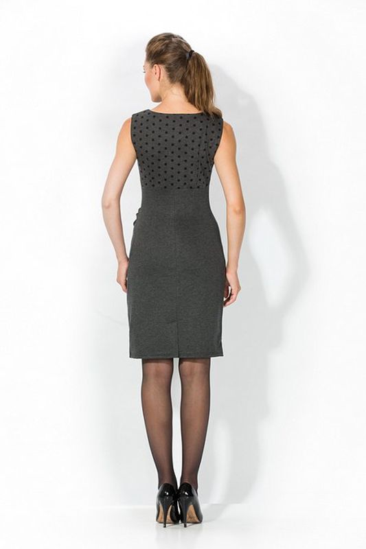 Изящное, представительное и невероятно элегантное приталенное платье – одна из самых необходимых моделей в гардеробе современной леди. Респектабельный стиль для делового приема, элегантный выход на торжество, или особую церемонию, утонченная женственность для романтического ужина… это платье придаст любому событию особый шарм и колорит. Фасон с отрезной кокеткой, которую продолжает низ обтягивающего приталенного силуэта, подчеркивает стройность и грацию фигуры, а невероятно насыщенный глубокий темно-серый цвет придает модели особую изысканность