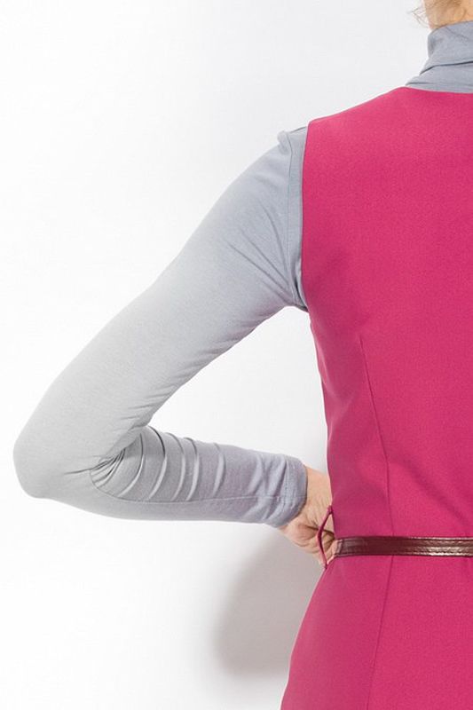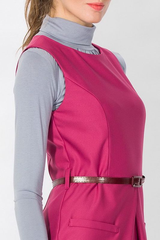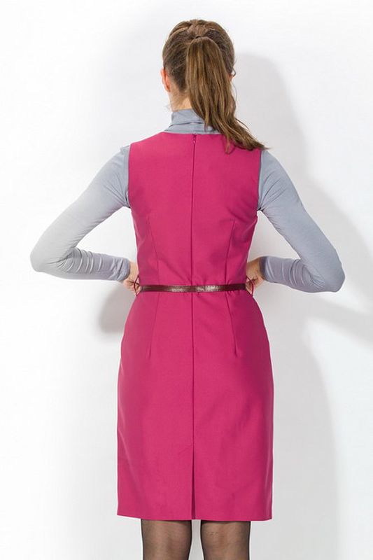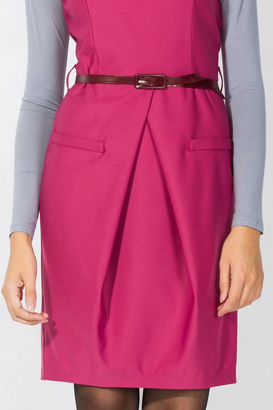 Яркая интерпретация классического прямого платья с юбкой-карандашом, или, как его еще называют - платья в стиле «фуро». Платье удивительно «многоречиво», и может быть представлено, как самостоятельная модель, но также и в сочетании с блузками самых разнообразных фасонов, создавая с ними гармоничный ансамбль. Эффектная модель отличается вытачкой на линии талии, которая создает мягкие складки, придавая юбке сходство с изящным фасоном «тюльпан». Особое изящество фасону придает аккуратный ремешок, который подчеркивает линию талии, а также яркий малиновый цвет модели, подчеркивающий утонченность модели.