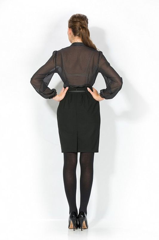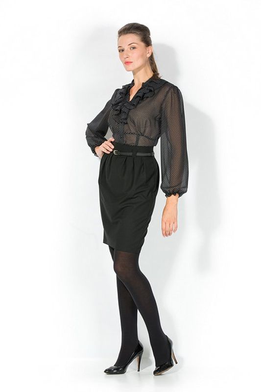 Изысканная юбка-тюльпан с мелкими вытачками по всей линии пояса, создающими очаровательный эффект легкой драпировки. Крой юбки идеально подчеркивает грацию фигуры, выражает особую утонченность и женственность модели. Юбка удивительно гармонично сочетается со многими фасонами блузок и жакетов. Модель, выполненная в черном цвете, составит любой, даже самый неординарный ансамбль цветовых сочетаний с другими предметами Вашего гардероба.