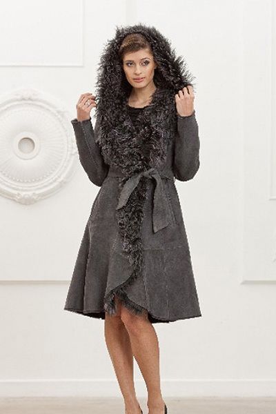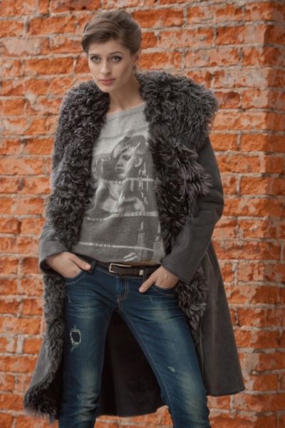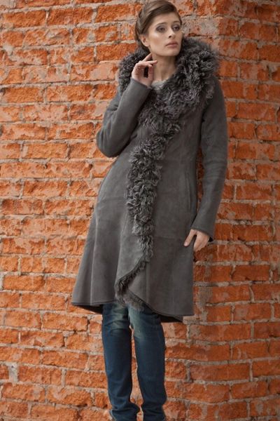 Элегантное и в то же время темпераментное и экспрессивное меховое пальто из кожи ягненка, особый шарм которому придает роскошный меховой воротник. Пальто выполнено в стиле «кардиган», и может запахиваться, создавая несколько образов: классический с изящным приталенным силуэтом в ансамбле с юбкой, платьем, или эффектный спортивный стиль в сочетании с джинсовыми моделями.