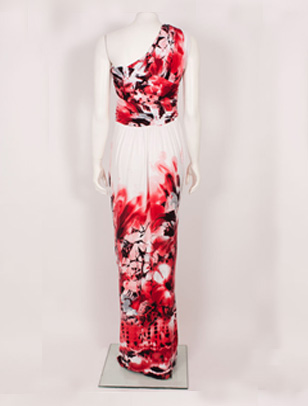 Яркий рисунок, эффектная драпировка, струящаяся ткань, облегающая фигуру и подчеркивающая грацию силуэта, а еще – оригинальный крой верха с одной бретелью, что акцентирует внимание на изящной линии плеч… в этом платье Ваш выход всегда будет особенным и потрясающе эффектным. Модель Evaline – элегантное платье, которое, несомненно, украсит гардероб современной леди, подчеркнет изысканность вкуса своей обладательницы.