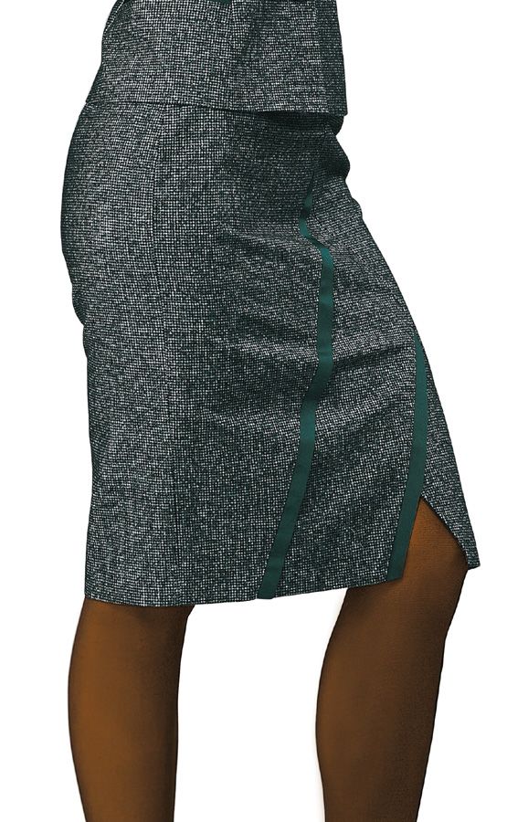 Юбка прямого кроя с чуть зауженным к низу силуэтом обладает яркими дизайнерскими идеями: фигурным срезом по низу, а также декоративной отделкой из ярких бирюзовых атласных лет, что придает общему стилю модели особый шарм и изящество. Деловой костюм, студенческий гардероб, повседневная одежда…юбка эффектно подчеркнет множество стилей и сочетается с большинством фасонов блузок, блуз и рубашек, а также составит гармоничный ансамбль с жакетом и пиджаком.