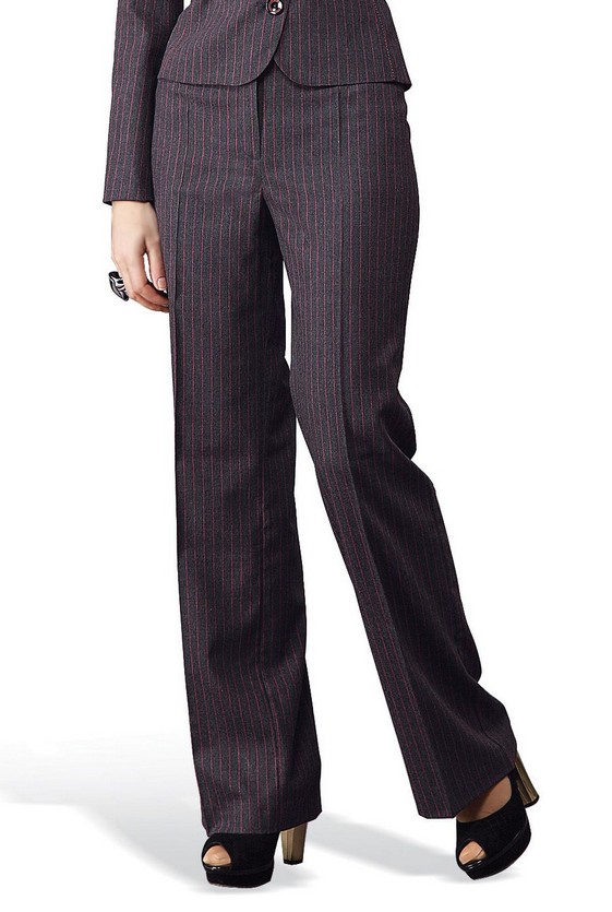 Классические брюки прямого кроя со стрелками спереди обладают деловитым и вместе с тем необыкновенно элегантным стилем. Модель гармонично сочетается со многими видами одежды и может эффектно подчеркнуть не только деловой костюм, но и прибавит красок в повседневную одежду. Брюки отличаются удивительным цветовым сочетанием тончайшей малиновой полоски и темно-синего фона, что придает модели особую утонченность.