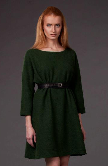 Эксклюзивная модель из новой коллекции осень-зима 2012/2013 от Хавы Арапиевой – платье-туника невероятно глубокого насыщенного темно-зеленого цвета, что придает этой стильной модели особенный изящный колорит. Платье выполнено в свободном крое, что позволяет носить его во множестве вариантов фасонов, например, – приталенным, благодаря пояску, а укороченные рукава позволят подобрать к модели изысканные аксессуары – перчатки и украшения, которые придадут этой дизайнерской модели особенную Вашу индивидуальность.