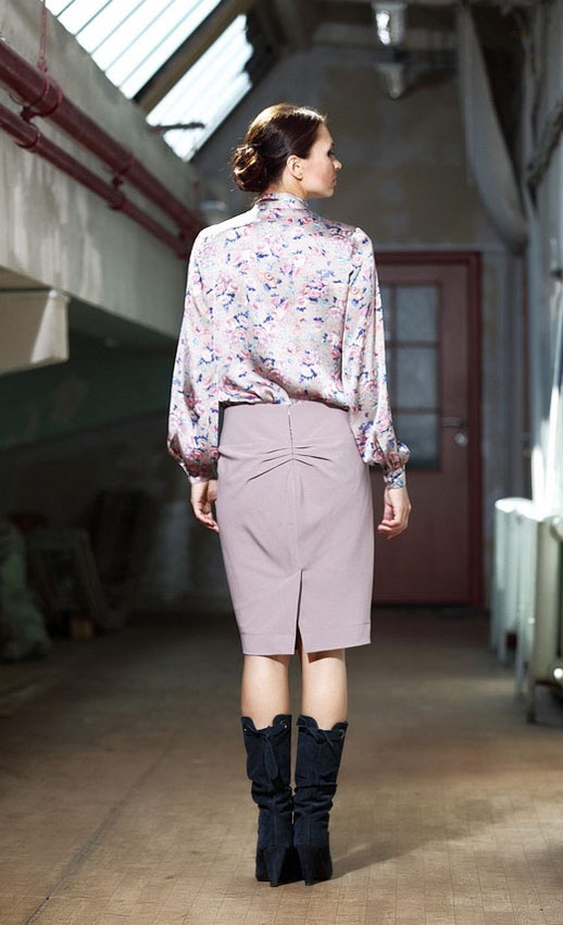 Эксклюзивная модель из новой коллекции осень-зима 2012/2013 от Лады Калининой – элегантная, утонченно-женственная блузка с эффектным бантом и декором передней полочки из складок. Модель обладает целой гаммой характеров и способна подчеркнуть большое разнообразие стилей, став прекрасным выбором, как для деловой встречи, так и для романтического свидания, или особого торжества. Изысканный цветочный рисунок придает модели особое очарование, а классический ее стиль подчеркивает исключительную элегантность.