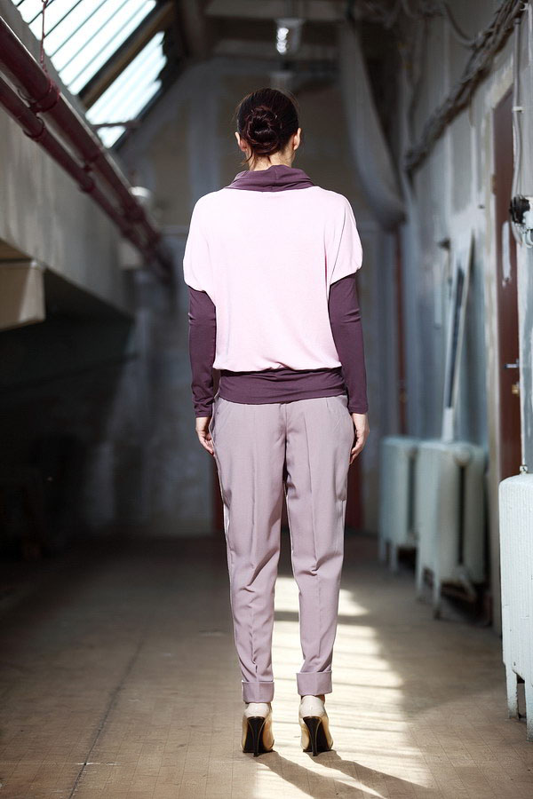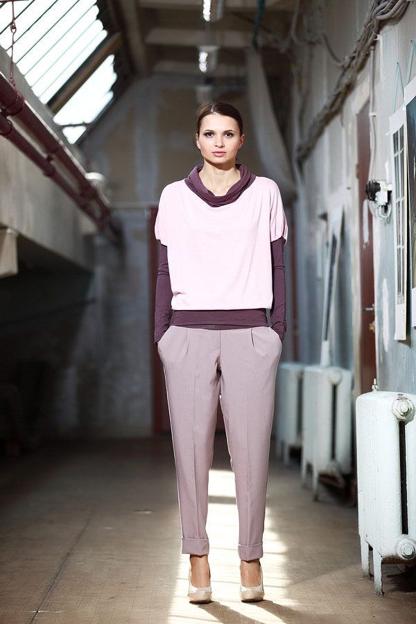 Эксклюзивная модель из новой коллекции осень-зима 2012/2013 от Лады Калининой – брюки нежного светло-серого цвета с фиалковым оттенком и изящным трикотажным поясом и элегантными манжетами-отворотами по низу. Выточки спереди позволяют брюкам мягко струится по фигуре, придавая ей стройность. Деловая встреча, студенческий гардероб, простая прогулка по магазинам – эта модель окажется «кстати» практически в любой ситуации.
