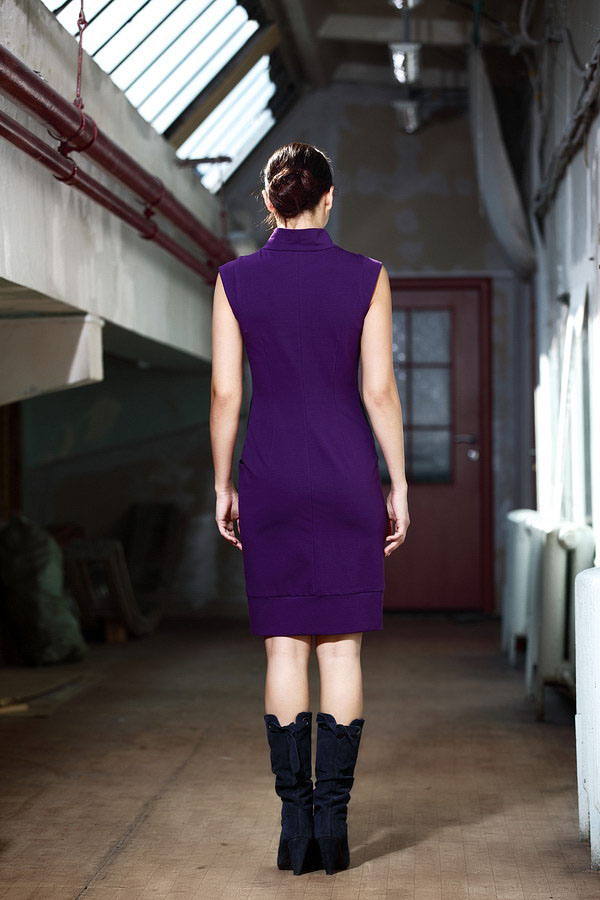 Эксклюзивная модель из новой коллекции осень-зима 2012/2013 от Лады Калининой – эффектное приталенное платье с декоративными контрастными вставками сбоку, придающими силуэту особую грацию. Воротник-стойка, кант по низу, застежка-молния по всей длине спереди и невероятно сочный фиолетовый цвет… в этой модели буквально каждая деталь обладает особым шармом.