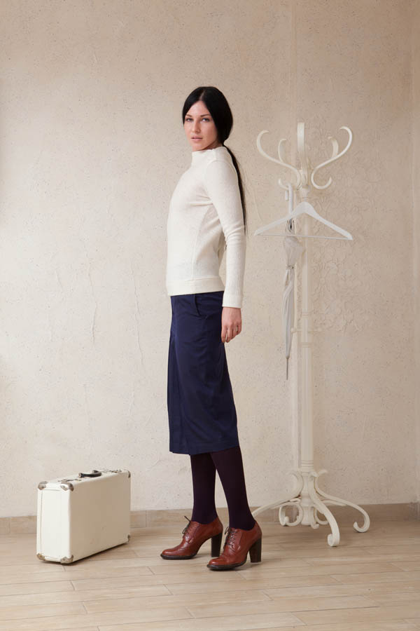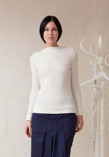 Эксклюзивная модель из коллекции Оксаны Ливенцовой для Studio Seven – эффектного кроя водолазка со спущенной линией плеча и горловиной покроя «лодочка».