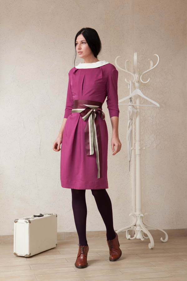 Эксклюзивная модель из коллекции Оксаны Ливенцовой для Studio Seven – оригинальное платье полуприлегающего силуэта с эффектными тремя складками уходящими в горловину платья. Модель отличается спущенной линией плеча и контрастным воротником. Пояс в комплекте.
