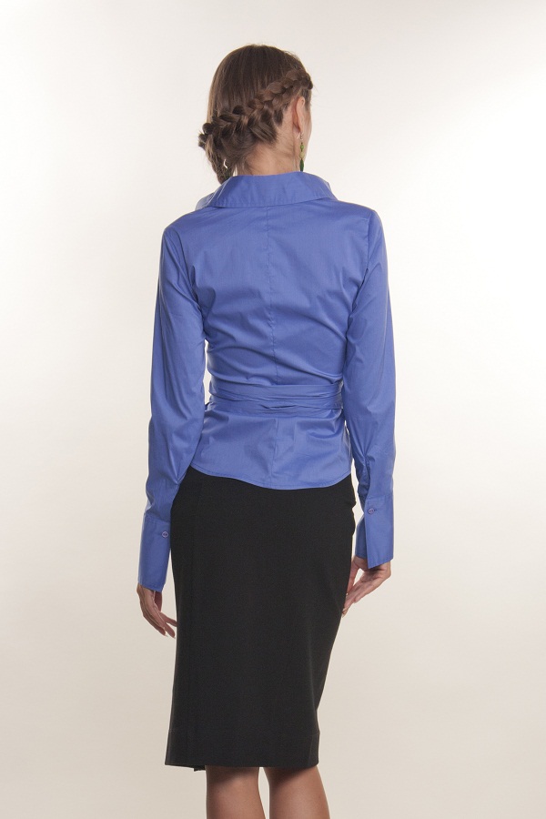 Эффектная блуза, в которой буквально каждая деталь кроя имеет свой колорит и шарм: широкие манжеты, подчеркивающие изящность запястья, «корсет» эффект которого образует лента, обернутая вокруг талии, сходящаяся спереди в изящный бант… а еще – изысканный «английский» воротник и фигурный срез низа, создающий «баску». В этой модели Вы всегда будете особенно неотразима.