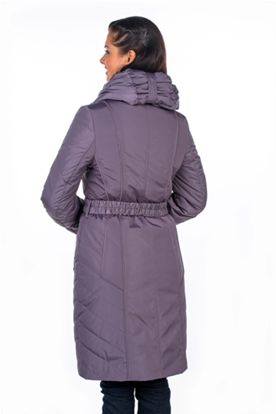 Элегантно стеганная удлиненная куртка с эластичным поясом, который подчеркивает линию талии. Несомненной «изюминкой» модели является роскошный воротник-капюшон, а также чуть скошенная застежка-молния, которая также использована и в прорезных карманах. Колоритный цвет «спелый виноград» придает куртке особый шарм.