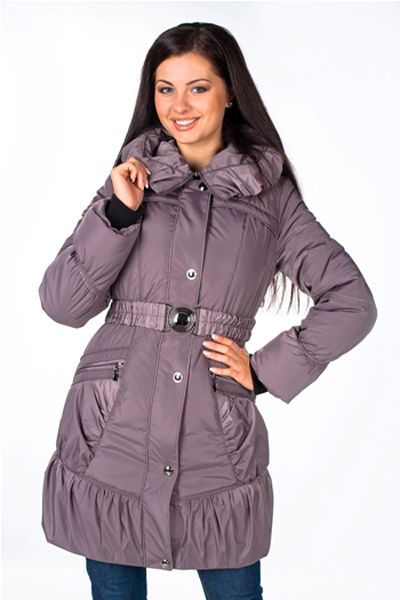 Удлиненная, элегантно стеганая куртка приталенного силуэта, который особенно подчеркивает изящный пояс, выполненный в тон модели. Особый колорит куртке придает декор низа присборенными деталями и роскошный капюшон, который возможно отстегнуть. Куртка имеет застежку на кнопки и молнию, которая также использована на прорезных карманах.