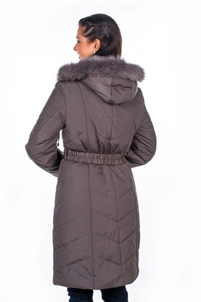 Элегантная стеганая куртка в глубоком и колоритном цвете графит, особый шарм которой придает теплый капюшон, отороченный натуральным мехом песца. Модель имеет эластичный пояс, застегивающийся на талии, застежка – молния и кнопки, по бокам – прорезные карманы. Капюшон, как и меховую опушку, возможно отстегнуть. Удобная и теплая модель, которая всегда согреет в холодное время года.