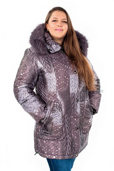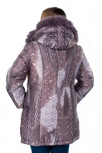 Эффектная куртка с оригинальным принтом, имитирующим ажурную вязаную ткань. Модель выполнена в свободном прямом крое, низ куртки, а также манжеты утягиваются эластичным шнуром с фиксатором. Особый колорит этой модели придает не только роскошный капюшон с оторочкой натуральным мехом песца, но и оригинальным декором накладных карманов легкой драпировкой. Застегивается куртка на кнопки и молнию, опушка из меха отстегивается.