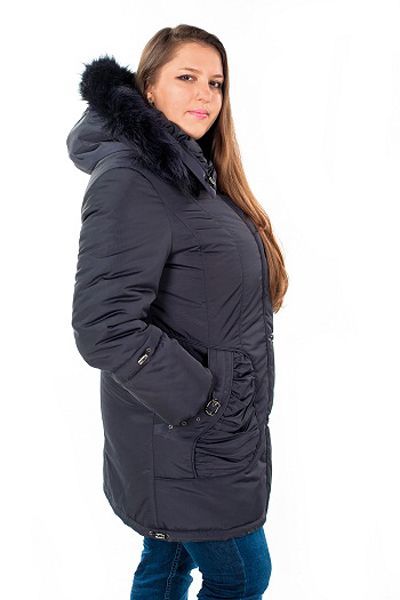 Выразительная и утонченная куртка глубокого синего цвета выполнена в комфортном и удобном прямом крое. Особенный шар модели придает роскошный капюшоном с оторочкой натуральным мехом песца (возможно отстегнуть), а также оригинальный декор накладных карманов легкой драпировкой. Куртка застегивается на молнию и кнопки, низ куртки, а также манжеты утягиваются эластичным шнуром с фиксатором.