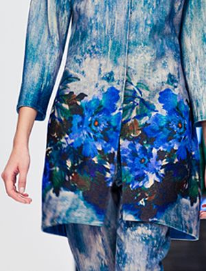 Эксклюзивная модель из коллекции модного Дома Iya Yots – неординарное, стильное пальто из натуральной шерсти с ярким аквамариновым цветочным рисунком. Особый шик пальто придает оригинальное дизайнерское решение - эффект "даблфейс" с использованием "двустороннего кроя" - в этой модели подклад выполнен из натурального шелка, рисунок которого повторяет основной "лицевой" фон модели. Эта по истине неординарная модель, украсит гардероб неординарной утонченной леди.