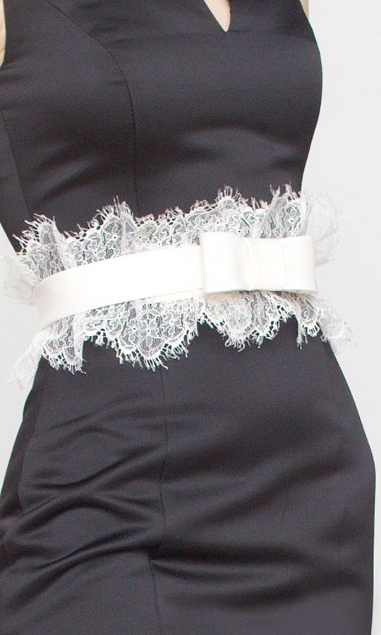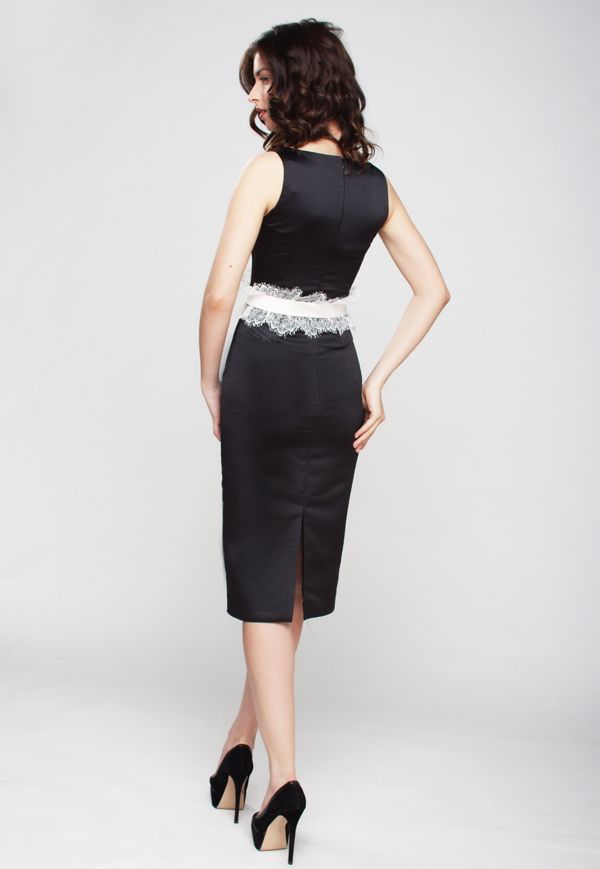 Эксклюзивная модель из коллекции Fiorese Manelli – изящное атласное платье элегантного черного цвета с эффектным поясом, декорированным ажурным кружевом. Облегающий силуэт, пикантная "капелька", которая придает особый шик высокому вырезу горловины "лодочка"... в этом платье достаточно миниатюрных "изюминок", которые создают неповторимую утонченность стиля модели.