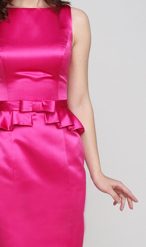 Эксклюзивная модель из коллекции Fiorese Manelli – яркое и элегантное платье для "особого выхода". Оригинальный крой с использованием пикантной баски с бантиком, изящный вырез горловины "лодочка", женственный облегающий фасон, подчеркивающий грацию фигуры и изысканный розовый атлас... это платье достойно самого эффектного Вашего выхода.