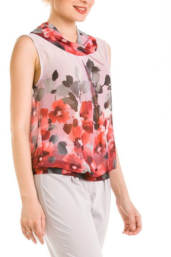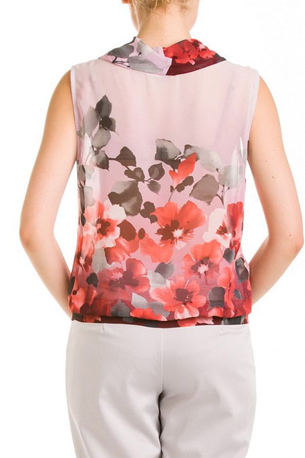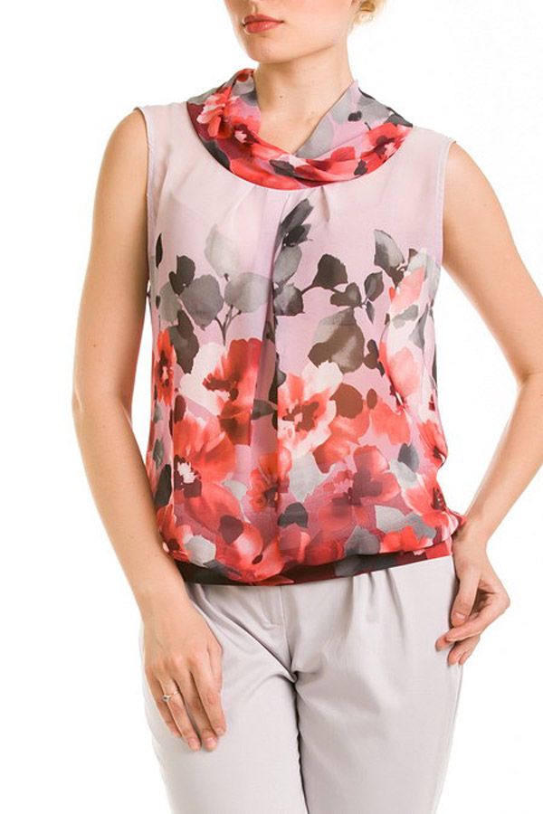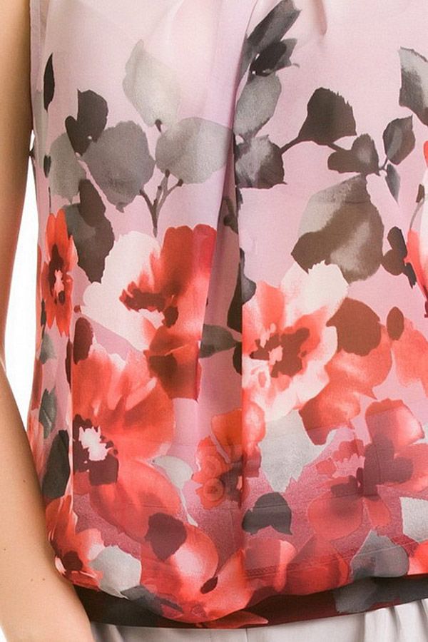 Яркая, колоритная блузка свободного кроя с эффектным цветочным принтом, сочетающим красные и серые оттенки. Необычная драпировка воротника придает блузке особую эксклюзивность в стиле, а легкий струящийся материал - особую грацию всему образу. Элегантная модель, несомненно, привнесет яркие краски и настроение в Ваш новый гардероб.