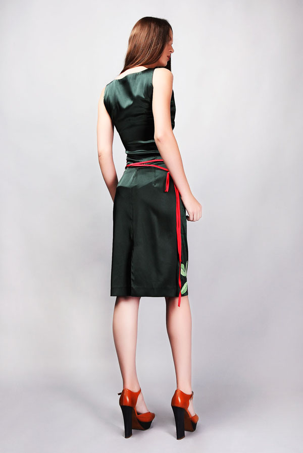Изящное, темпераментное и яркое платье из новой коллекции Kate Frankfurt, колорит которому придают эффектные идеи в крое, а также выразительный принт и сочетание цветовых контрастов. Легкая драпировка придает прямому силуэту изящество в стиле, оригинальный поясок, обвивающий тонкой "змейкой" талию, придает грацию и "небрежную элегантность". Особый шик и очарование создает цветовая гамма сочетания изумрудного и яркого красного цветов, а также уникальный цветочный принт и контрастное исполнение спинки. Яркая модель для эффектного модного гардероба