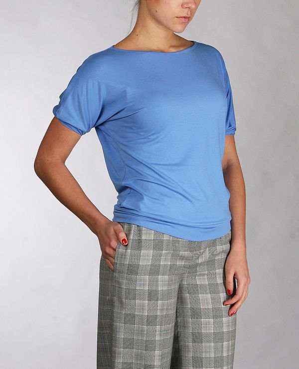 Модель из эксклюзивной коллекции Елены Шипиловой - блуза свободного кроя. Необыкновенный небесно-голубой цвет, свободный крой, изящный вырез-лодочка, короткие рукава, чуть присборенные на тонких манжетах и высококачественный натуральный материал... в этой блузе практичность и комфорт необыкновенно гармонично сочетается с колоритом модных тенденций сезона. Практически универсальный блузон, который сочетается со множеством моделей одежды гардероба.