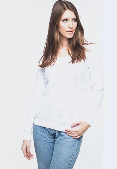 Эффектный джемпер из новой коллекции Tocini. Эта изящная модель выполнена ажурным узором, сочетающим скандинавские мотивы с классическими "косичками", что придает очарование стилю и создает яркий образ. Вырез горловины в виде капельки позволит подобрать к этой модели любимые украшения. Резинка выполнена по низу модели, а также на манжетах рукавов.