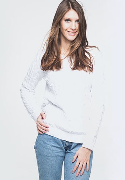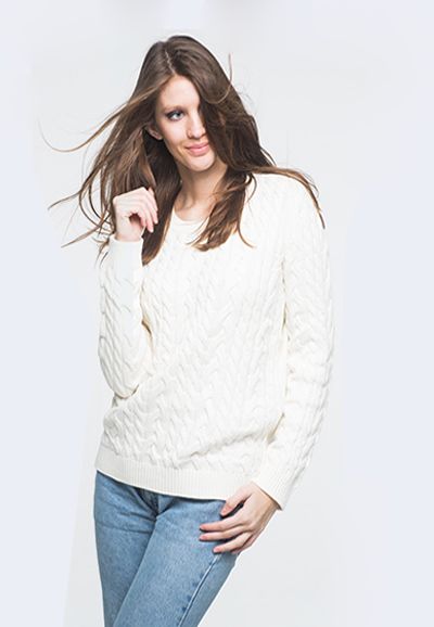 Элегантный колоритный джемпер из новой коллекции Tocini. Эта изящная модель выполнена ажурным узором из выразительных "косичек", которые создают элегантный рельеф фантазийного рисунка. Модель представлена в очаровательных пастельных цветах, а также ярких оттенках, отличается изящным округлым вырезом горловины, который, как и манжеты, и низ джемпера, имеют отделку английской резинкой.