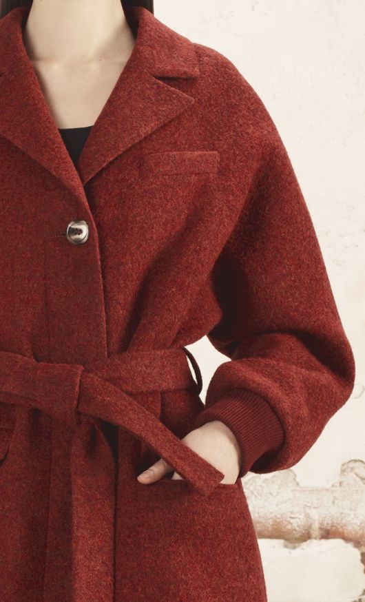 Модель из новой коллекции Виктории Андреяновой - яркое, элегантное пальто с поясом. Модель выполнена в прямом силуэте, который всегда возможно сделать изящным приталенным, благодаря поясу, или носить, как стильное пальто-халат, что придаст Вашему гардеробу большое разнообразие стилей. Классический "английский" отложной воротник, широкие клапаны прорезных карманов по бокам, изящный кармашек, украшающий верх модели, скрытая застежка, которую "обозначивает" эффектная декоративная верхняя пуговица... в этой модели достаточно "изюминок", чтобы стать достойным приобретением для нового гардероба.