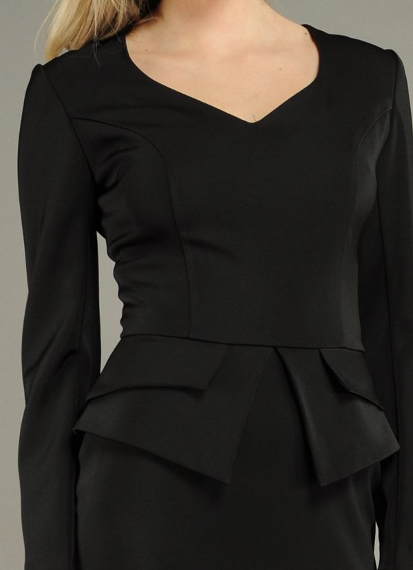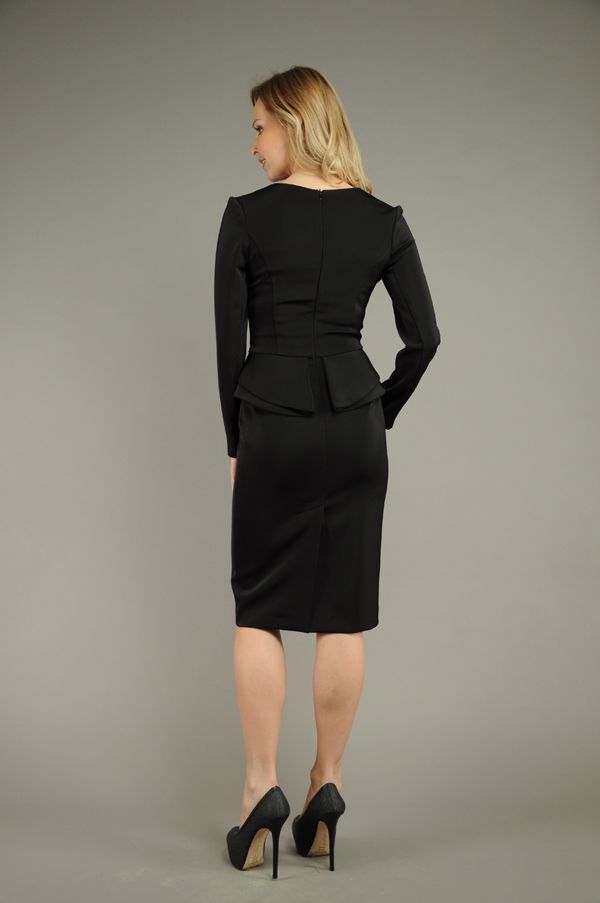 Эксклюзивная модель бренда Stella di mare - элегантное облегающее платье с фигурной двухслойной баской, подчеркивающей линию талии и грацию бедер. Особую нотку очарования этой, можно сказать, классической модели, придает пикантный вырез горловины в форме аккуратного "сердечка", который всегда можно подчеркнуть элегантными украшениями. Модель выполнена из эластичного трикотажа, который мягко облегает фигуру, придавая силуэту особое изящество, сзади - удобная шлица, застежка - на спинке на "молнию". Идеальный выбор, как для делового гардероба, так и для особого варианта "важный случай"...