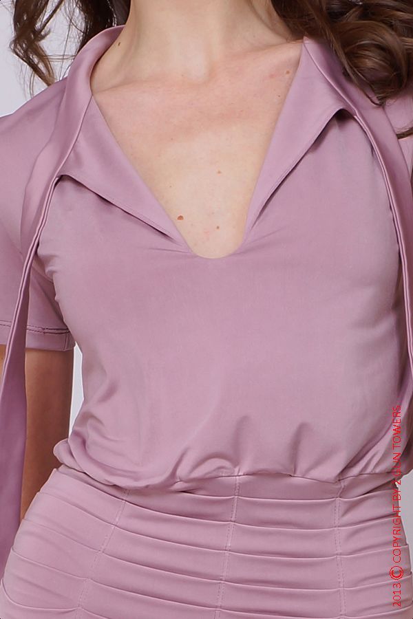 Эксклюзивная модель из новой коллекции творческого дуэта Две Сорванные Башни - нежное сиреневое платье, которое невероятно насыщено оригинальными дизайнерскими идеями. Это и очаровательная юбка-тюльпан, "окантованная" манжетой по низу, также линия талии и бедер подчеркнута особой вставкой из застроченных складок, что создает образ корсета. Верх модели выполнен в уникальном крое, который может выразить стиль "рубашка" и "блуза, в зависимости от того, как вы поступите с дизайном лент воротника - завязав их в изящный бант, либо оставив "на воле". Платье имеет боковые врезные карманы.