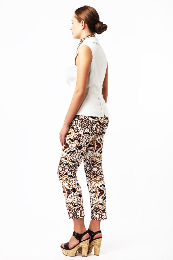 Укороченные брюки с ярким принтом "змея" - эксклюзивная модель из новой коллекции Yulia Dushina. Модель имеет разрезы по бокам, два кармана спереди и два - сзади.