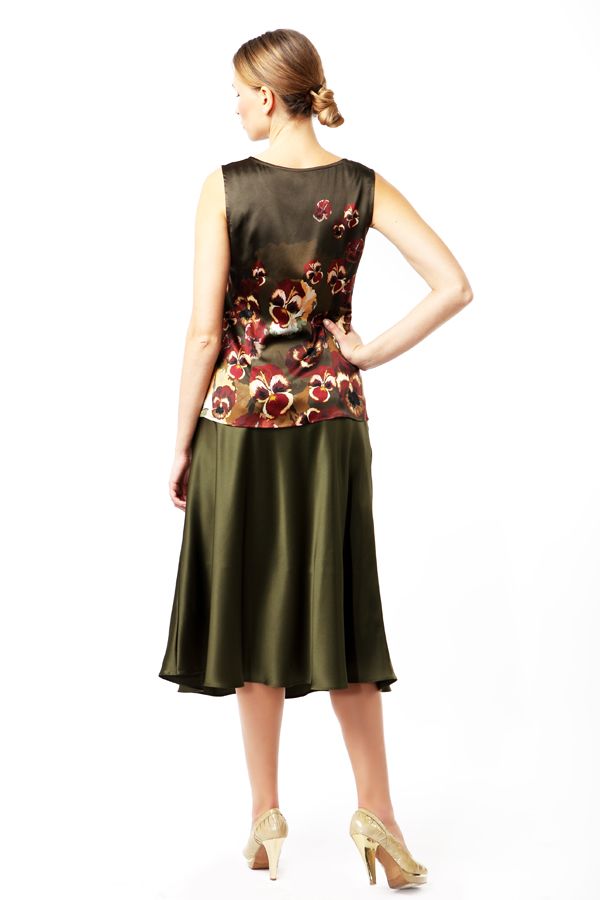 Эксклюзивная модель из новой коллекции Yulia Dushina - роскошная расклешенная шелковая юбка, раскроенная по косой линии. Пояс юбки - на резинке, подкладка - черная.