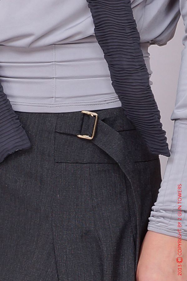 Эксклюзивная модель из новой коллекции творческого дуэта Две Сорванные Башни - необычная блуза с яркими дизайнерскими идеями в крое. Линия талии и бедер подчеркнута особой вставкой из застроченных складок, что создает образ корсета, верх модели выполнен в уникальном фасоне, который может выразить стиль "рубашка" и "блуза", в зависимости от того, как вы поступите с дизайном лент воротника - завязав их в изящный бант, либо оставив "на воле". Изысканный штрих - лента с одной стороны декорирована плиссе из темно-синей - контрастной основному фону ткани. На спинке - выразительный декор, образующий драпировку.