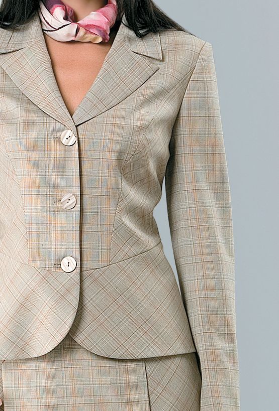 Новинка коллекции Modika - обаятельный и утонченный жакет в клетку, которую создают легкие штрихи песочного, голубого и серого оттенков, создавая единый цветовой ансамбль. Английский отложной воротник с фигурными лацканами, изящная застежка на пуговицы, благодаря которой создается приталенный силуэт - в этой модели собрана вся классика делового костюма, а нежный серый цвет придает модели восхитительное настроение весны.