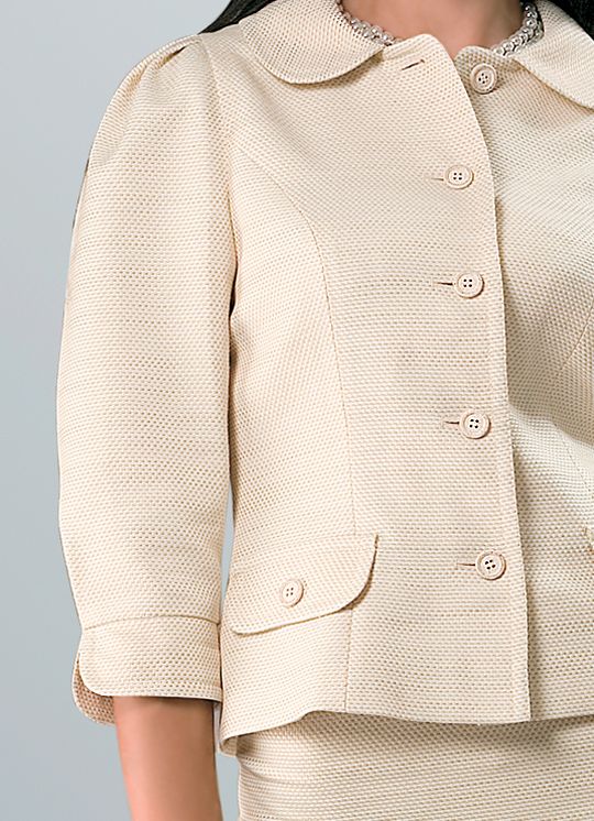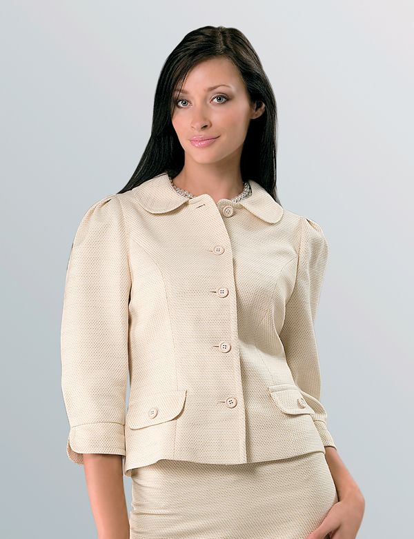 Новинка коллекции Modika - жакет в стиле кантри из ткани, имитирующей "рогожку" - один из хитов нового модного сезона. Оригинальный крой рукавов, создающий фасон "фонарик" у плеча, которые заканчиваются чуть выше запястья изящным кантом манжет, очаровательный округлый воротник, приталенный силуэт - в этой модели достаточно необычных "изюминок", чтобы стать украшением и делового, и повседневного гардероба.