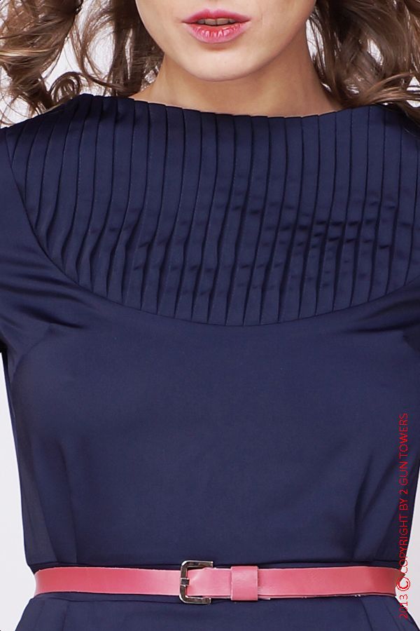 Эксклюзивная модель из новой коллекции творческого дуэта Две Сорванные Башни - изящное платье с эффектной изысканной вставкой на лифе, созданной из тонких вертикальных складок... этой яркой "изюминки" уже более чем достаточно, чтобы классическое приталенное платье придало особый шарм Вашему выходу. Хотя... дизайнерский штрих - декор контрастным малиновым пояском завершает эту изумительную работу.