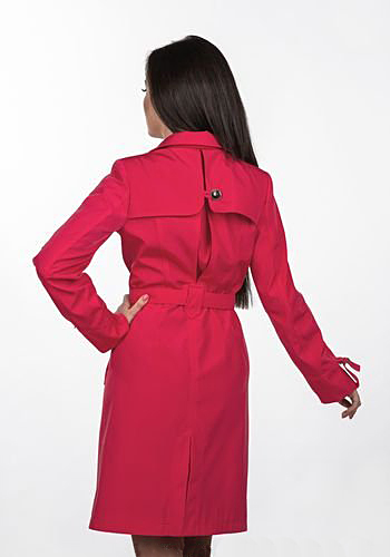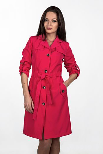 Выразительный яркий плащ "Глория" кораллового цвета с эффектными деталями в крое. Модель отличается отрезной кокеткой, необычными манжетами, которые возможно подвернуть и застегнуть, придав рукаву длину в 3/4. Врезные карманы по бокам декорированы пуговицами, которые украшают фигурные листочки, пояс элегантно продевается в широкие петли на уровнее талии. Оригинальный и стильный плащ для нового сезона.