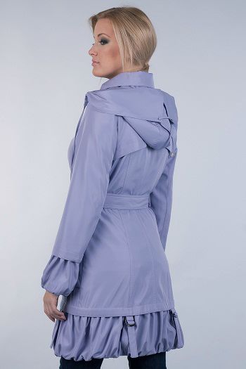 Однобортный плащ изысканного и одновременно спортивного цвета "деним", который буквально насыщен яркими идеями в декоре и крое: округлый элегантный отложной воротник, удобный капюшон, отделка манжетов рукавов и низ плаща изящной драпировкой. Модель также отличается выразительными накладными карманами, застежка - на пуговицы, пояс имеет эффектную пряжку.