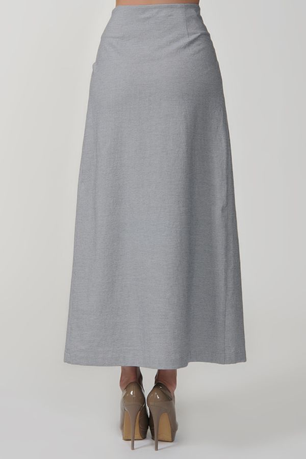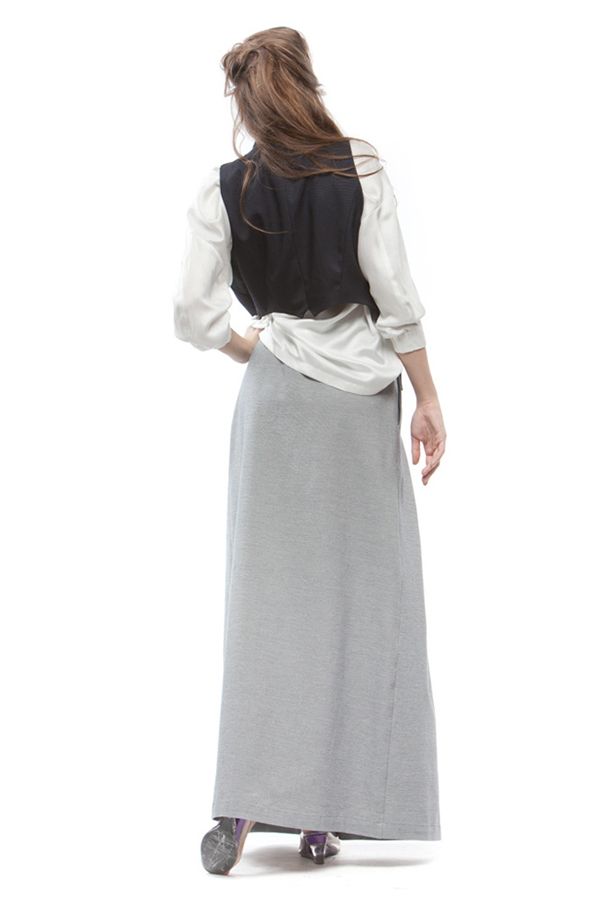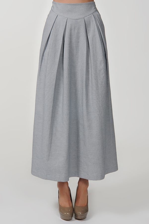 Эксклюзивная модель из новой коллекции Studio Seven – изящная юбка в пол, шарм которой приадают выразительные струящиеся веерные складки, ниспадающие от пояса к низу спереди, фигурная кокетка, а особый колорит - нежный светло-серый "серебристый" цвет.
