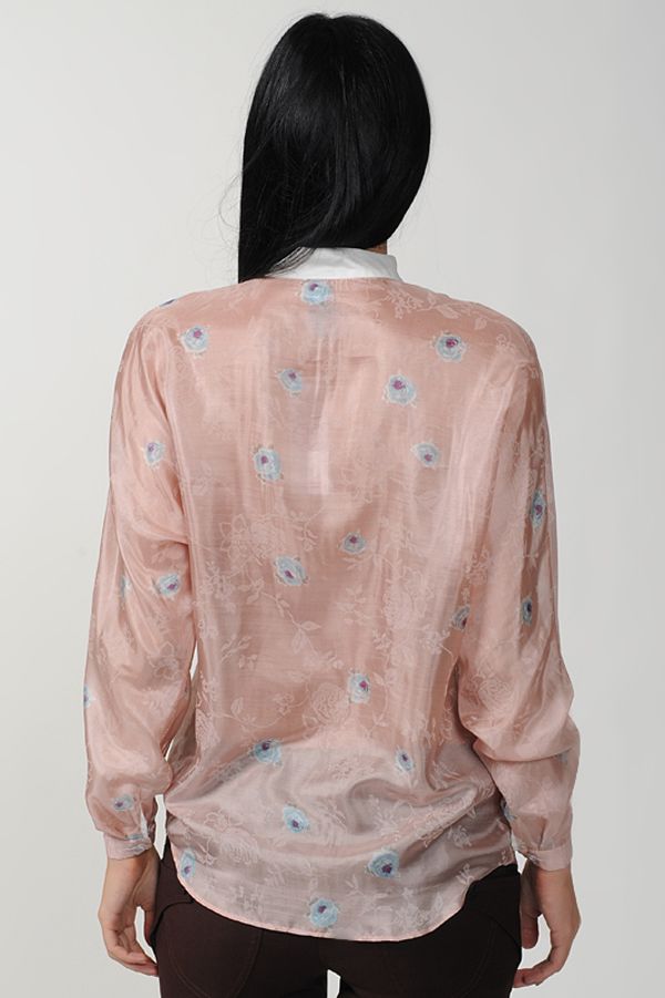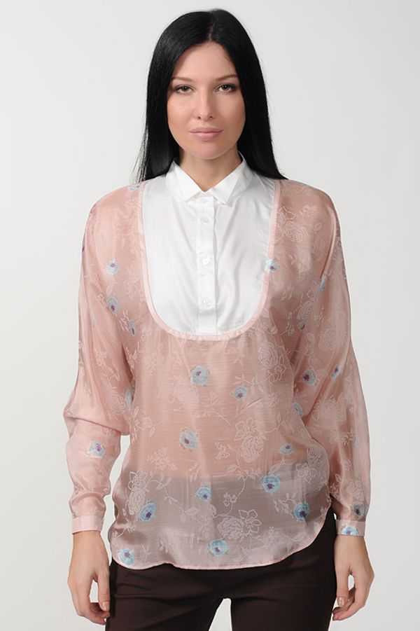 Эксклюзивная модель из новой коллекции Studio Seven – элегантная блузка из изысканного струящегося шелка. Блуза выполнена в свободном крое, шарм которому придают рукава "летучая мышь", а также эффектная кокетливая манишка белого цвета, которая изумительно сочетается с нежно-розовым основным фоном.