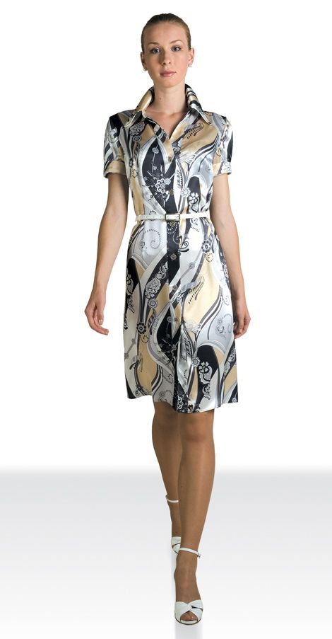 Новинка коллекции Modika - летнее платье в изящном рубашечном" крое с застежкой на пуговицы по всей длине модели. Приталенный силуэт модели, выполненной в прямом крое, придает изящный белый поясок, который создает мягкий контраст основному фантазийному абстрактному принту. Короткие рукава "отстрочены" манжетами, отложной воротник изящно переходит в v-образный вырез. Удачный выбор, как для делового, так и повседневного гардероба.