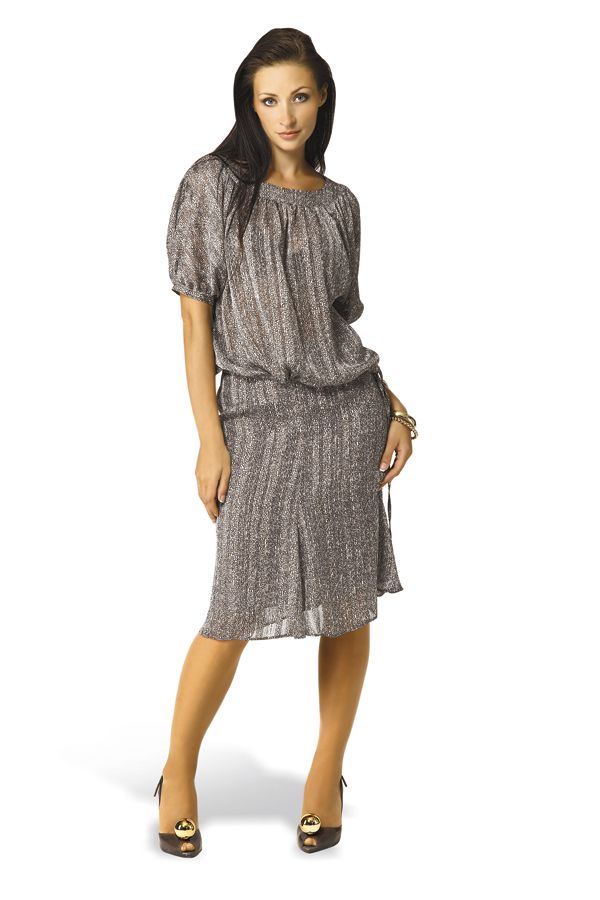 Новинка коллекции Modika - блузка изящного "искристого" серого цвета, колорит которому придает принт в мельчайший горошек серого, голубого цветов и тона "хаки". Оригинальность свободному крою блузы придают рукава-пуффы длиной до локтя, широкий вырез "лодочка" с выразительной окантновкой, а также поясок, который создает легкую волну присборенной ткани, спускающуюся до линии бедер. Изящная блуза для модного гардероба, которая станет незаменимой, как в повседневном, так и деловом гардеробе.