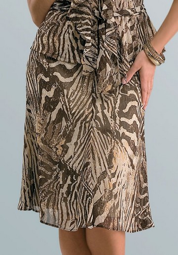Новинка коллекции Modika - нежная изящная юбка с чуть расклешенным силуэтом. Эффектная модель отличается модным анималистическим принтом "а`ля тигр", который создает особый шик эксклюзивности. Юбка может стать прекрасным выбором, как для повседневного, или "особенного", так и для делового гардероба.