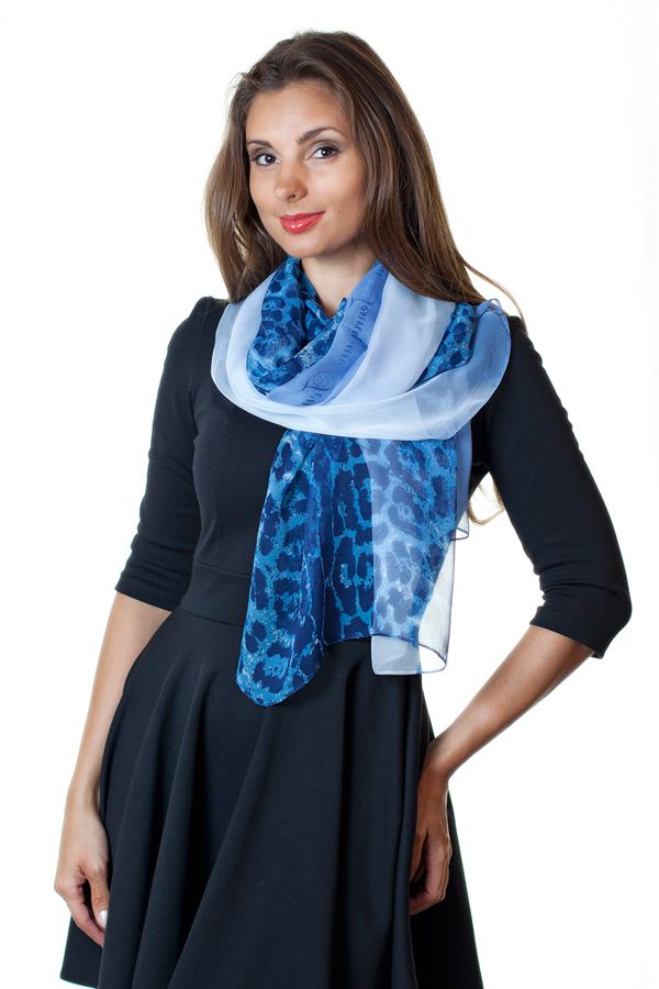 Эффектный легкий платок сочетающий нежные синий и белый цвета, а также модный ныне абстрактный цветочный принт. Шарф-платок - одна из самых модных деталей гардероба, которая придаст любому костюму, или платью особый штрих и колорит. Благодаря достаточной длине, платок позволит создать множество интересных фантазийных композиций и живописных бантов.