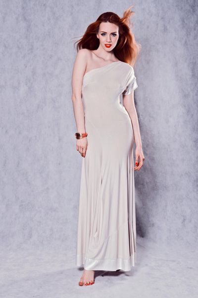 Великолепное платье сложного кроя с изящной, струящейся юбкой и оригинальным исполнением верха - топом в стиле "диско" на одно плечо. Необычный дизайн в сочетании с шелковой отделкой создают незабываемый образ. Великолеаный выбор для отдыха и вечеринки.