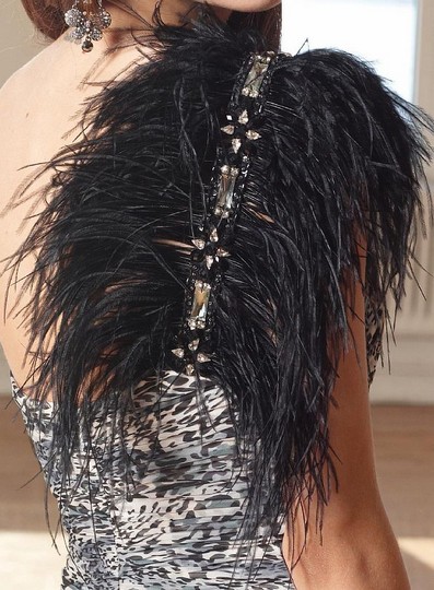 Эксклюзивная модель из новой колекции Terani - эффектное коктейльное платье с легкой горизонтальной драпировкой по всему объему. Модель отличается анималистическим принтом, выразительным декольте и невероятно очаровательным декором бретели на одно плечо элементом из перьев. Платье станет изумительным выбором для особых презентаций, выхода на светский раут, изысканным вариантом для особых торжеств.