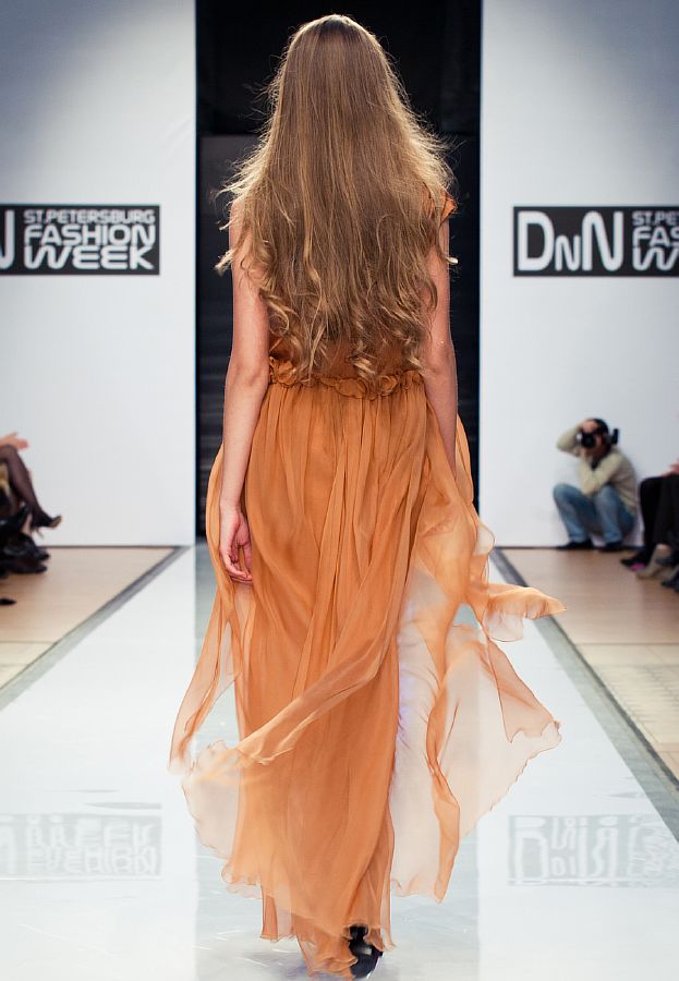 Эксклюзивная модель из коллекции модного Дома Iya Yots – платье в пол, выполненное из двух тканей-компаньонов. Лиф и укороченная юбка выполнены из атласа, а основная юбка в пол - из тончайшего прозрачного шелкового шифона, который представляет уникальный крой в виде лепестков. Изысканная асимметричная драпировка на плече создает эффект пышного банта, завязанного в аккуратный узел. Платье имет потайную застежку-молнию в боковом шве. По замыслу дизайнера, это платье эффектно сочетает две длины, при ходьбе "лепестки" распахиваются, обнажая колени.